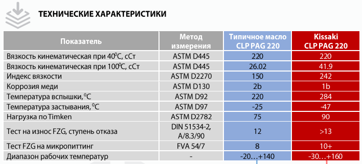 KATANA KISSAKI CLP PAG 220 соответствует или рекомендуется под замену масел категории DIN 51517 часть 3 (CLP), ISO 6743/6 (CKS/CKT), David Brown Type G, Flender BA T 7300 A + B