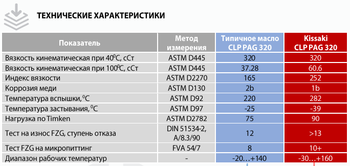 KATANA KISSAKI CLP PAG 320 соответствует или рекомендуется под замену масел категории DIN 51517 часть 3 (CLP), ISO 6743/6 (CKS/CKT), David Brown Type G, Flender BA T 7300 A + B