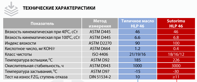 KATANA SUTORIMU HLP 46 соответствует или рекомендуется под замену масел категории DIN 51524 часть 2 (HLP), ISO 11158 тип HM, ISO 20763, Bosch Rexroth 90220, Eaton Vickers M-2950-S (мобильная гидравлика), Eaton Vickers I-286 S3 (промышленная гидравлика), Vickers 35VQ25, Denison HF-0, HF-1 и HF-2, Cincinnati Milacron P-70