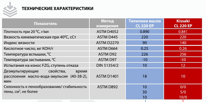 KATANA KISSAKI CL 220 EP соответствует или рекомендуется под замену масел категории DIN 51517 часть 2 (CL), DIN 51517 часть 3 (CLP), Metso Paper RAU 4L00659.04
