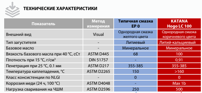 KATANA HOGO LC 100 соответствует или рекомендуется под замену масел категории DIN 51825 KP0G-30
