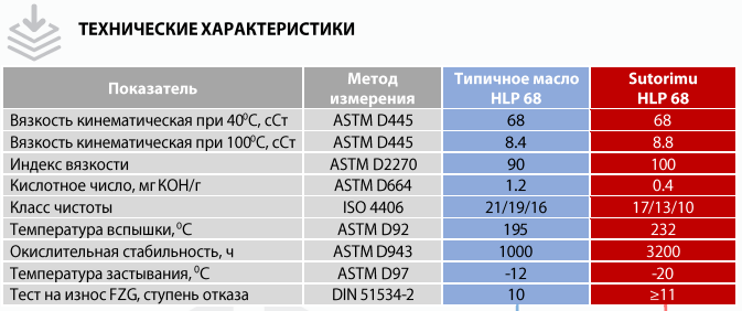 KATANA SUTORIMU HLP 68 соответствует или рекомендуется под замену масел категории DIN 51524 часть 2 (HLP), ISO 11158 тип HM, ISO 20763, Bosch Rexroth 90220, Eaton Vickers M-2950-S (мобильная гидравлика), Eaton Vickers I-286 S3 (промышленная гидравлика), Vickers 35VQ25, Denison HF-0, HF-1 и HF-2, Cincinnati Milacron P-69