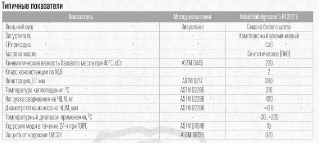 Наша команда всегда готова помочь с выбором и ответить на ваши вопросы. NOBEL Nobelgrease 5 H1 222 S – это гарантия надежной защиты вашей техники, оптимальные эксплуатационные характеристики и выгодная цена. Не откладывайте покупку – закажите прямо сейчас по телефону +7 (495) 106-36-17 и обеспечьте свою технику проверенным качеством.
