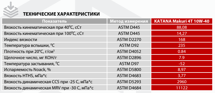 KATANA MAKURI 4T 10W-40 соответствует или рекомендуется под замену масел категории API SP, JASO MA-2