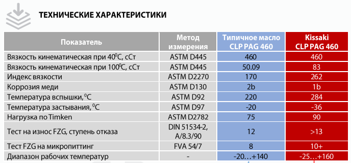KATANA KISSAKI CLP PAG 460 соответствует или рекомендуется под замену масел категории DIN 51517 часть 3 (CLP), ISO 6743/6 (CKS/CKT), David Brown Type G, Flender BA T 7300 A + B